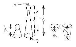 combining with other bases as {upward, less}: short, {upward, much}: tall,