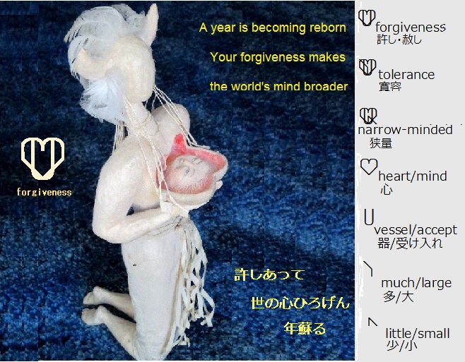 2014年には、宗教や考え方や利得をめぐって対立する多くの国際問題がありました。互いに角を突き出して構えるしかないのでしょうか?少し で も相手を許す心を開くなら、その分心は大きく育ちます。戦闘の代わりに、逆に相手の立場をほんの少し助けて、ともに育つことはできないもので しょうか?地球語の記号を見ていると、可能な気がしてきませんか?受け入れにくいことにもちょっと心を開いてみる自分を許して、2015年を 新鮮にお迎えくださいませ。 |