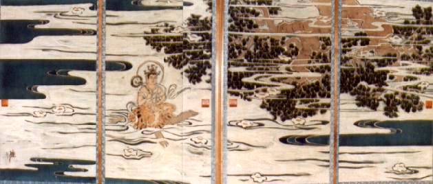 The sliding doors of the room about the legend of Manganji temple: