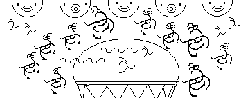 {gd (d-verb),55(want)} {{28(surface),64(shock)}(beat) {{36,42}(sound),50(thing/tool)}}(drum): want to become a drum (Later 'drum' might be given a simplified single character, but now not so many kinds of tools and things are ready yet) (太鼓になりたい;太鼓の一文字は未定)
