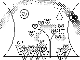 ★今月の文字絵(上)は、下の文に出てくる地球語太極拳の短編「雨上がり」